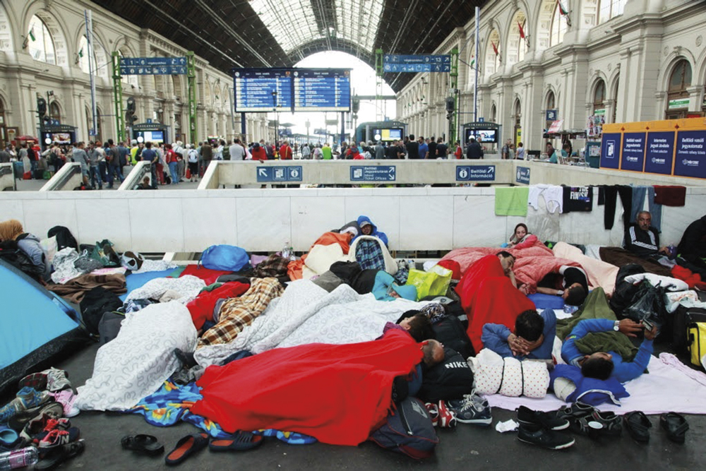 Figure 11.3. Keleti Railway Station; filled with the bodies of Syrian refugees, escaping their country, waiting for entrance into Germany, sleeping on cold floors, with little food, little safety, and an uncertain future. (Photograph taken by Bence Járány, posted by Rebecca Harms, Creative Commons Attribution-ShareAlike 2.0 Generic, CC BY-SA 2.0, September 2015.)